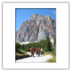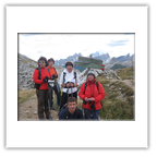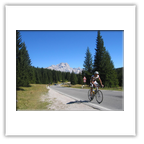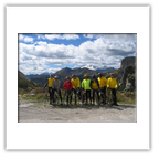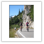 Am dritten Tag stand für die Mountainbikegruppe eine Wanderung auf dem Terminplan. Hier kann man natürlich noch weiter in Regionen vorstoßen, die man mit dem Mountainbike nicht erreichen kann. Unser Kurt, ein erfahrener Kletterer, führte die Gruppe zum Col de Bos 2320m und über die Querung am 3210m hohen Tofane de Rozes. Diese Tour war genauso spektakulär und überwältigend wie die Bergtour am vierten Tag auf das 3152m hohe Pitz Boe mit seinem herrlichen Blick auf die umliegende Bergwelt bis zu den mit schneebedeckten Gipfeln der Alpen.