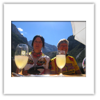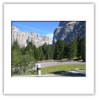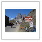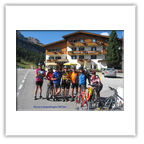 Warum gerade Arabba? Die Antwort gab der morgendliche Blick aus dem Hotelfenster. Egal in welche Richtung man schaute, nur schönes Wetter und majestätisch steil die Berge der Dolomiten. Unser Hotel Mesdi lag direkt an der Route der Sella Ronda, wo wir auf den Spuren des Giro d'Italia die Fährte der Profis aufnahmen. Bei strahlendem Sonnenschein, der sich jeden Morgen wiederholte, und nach einem reichhaltigen Frühstück war der Start zu unserer ersten Tour der Sellarunde.