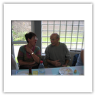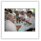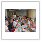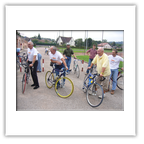 Im Salle Beauregard wurden wir herzlichst empfangen und von den Bürgermeistern Monsieur Humpert und Herrn Mußler begrüßt. Bei dieser Gelegenheit überreichte Reinhard Lehre dem ehemaligen Präsidenten des Radclubs Raon L' Etape und immer noch radsportbegeisterten Ehepaar Monsieur und Madame Ideaux ein kleines Präsent zum 60-jährigen Ehejubiläum. Die beiden lassen es sich nicht nehmen, bei unseren Besuchen in Raon dabei zu sein. Besonders hat es uns gefreut, dass sie uns oben auf dem Col du Donon erwarteten und uns mit dem PKW bis Raon begleiteten. Danach nahmen uns die Raoneser Radsportfreunde in Beschlag.