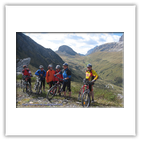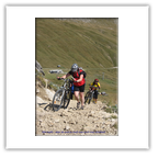 Am dritten Tag stand für die Mountainbikegruppe eine Wanderung auf dem Terminplan. Hier kann man natürlich noch weiter in Regionen vorstoßen, die man mit dem Mountainbike nicht erreichen kann. Unser Kurt, ein erfahrener Kletterer, führte die Gruppe zum Col de Bos 2320m und über die Querung am 3210m hohen Tofane de Rozes. Diese Tour war genauso spektakulär und überwältigend wie die Bergtour am vierten Tag auf das 3152m hohe Pitz Boe mit seinem herrlichen Blick auf die umliegende Bergwelt bis zu den mit schneebedeckten Gipfeln der Alpen.