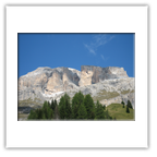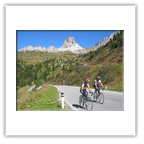 Warum gerade Arabba? Die Antwort gab der morgendliche Blick aus dem Hotelfenster. Egal in welche Richtung man schaute, nur schönes Wetter und majestätisch steil die Berge der Dolomiten. Unser Hotel Mesdi lag direkt an der Route der Sella Ronda, wo wir auf den Spuren des Giro d'Italia die Fährte der Profis aufnahmen. Bei strahlendem Sonnenschein, der sich jeden Morgen wiederholte, und nach einem reichhaltigen Frühstück war der Start zu unserer ersten Tour der Sellarunde.