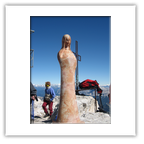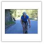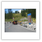 Am vierten Tag ging es zum Passo di Giau, unserer Königsetappe. Es war jeder gespannt, was ihn erwartete. Hatte man die bis jetzt schon gefahrenen Pässe noch aus früheren Touren in Erinnerung, war dieser Pass für alle unbekannt. Bei herrlichem Sonnenschein ging es Richtung Falzarego, doch nach Andraz kam der Abzweig zum Col Santa Lucia und bei Selva di Cadore begann die Auffahrt zum Passo di Giau. 2233m. Steigungen bis 14% mussten überwunden werden, die aber von allen, auch von unseren beiden Damen mit Bravour bewältigt wurden. Den Lohn für diese Anstrengungen erhält man dann natürlich auf der Passhöhe. Hier suchten wir uns ein windstilles Plätzchen und wurden dann von unserem Begleiter Günter verwöhnt, der unterwegs Vesper eingekauft hatte. Ohne ihn wäre nicht alles so durchführbar gewesen, denn auf den Passhöhen, die alle über 2000m hoch waren, ist wärmere Kleidung für die Abfahrten notwendig, die man nicht alle im Trikot mitnehmen kann. In diesen Regionen herrschen schon andere Gesetze wie zu Hause. Über eine herrliche gute Straße mit unendlichen Kehren streiften wir fast Cortina di Ampezzo. Weiter über den Falzaregopass waren wir nach 76 km und über 2000 Hm zurück in Arabba.