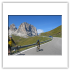 Es ging gleich von Arabba zum Passo Pordoi (2.239 Meter) nach einer wunderschönen Abfahrt zum Sellajoch auf (2.213 Meter) über den Passo Gardena (2.121 Meter) zur Abfahrt nach Corvara und über den Passo di Campolongo (1875 Meter) über eine rasante Abfahrt zurück nach Arabba. Mit 56 km und 1700 Hm eine wunderschöne Tour, um sich an die Gipfel der Dolomiten zu gewöhnen.